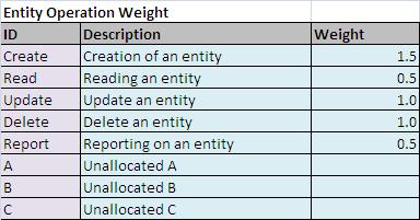 As for all the calibration, the provided values are likely to be useful but the optimal values will depend on the business context of the estimator. It is suggested that the calibration should be adjusted from project to project until the most appropriate values are found. For a more rigorous approach a function-point counting style could be adopted on a specification of some suitable scenarios. The idea is to count the number of entities (c.f. database tables) that need to be managed by each scenario.